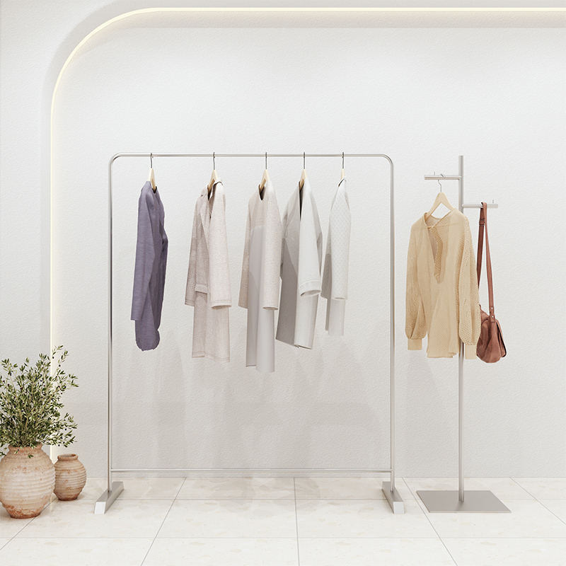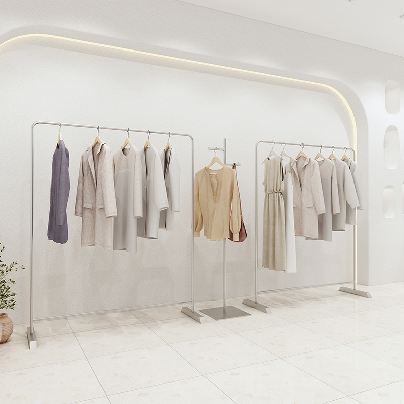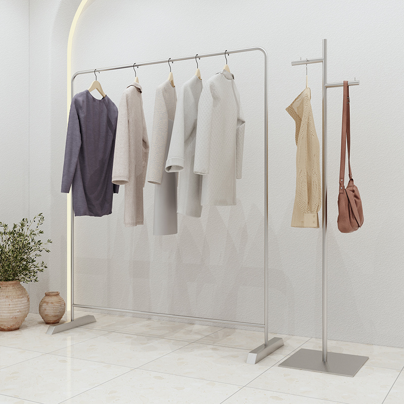 Clothing store display stand floor-standing special hanger solid stainless steel silver clothes rack women's clothing store shelves