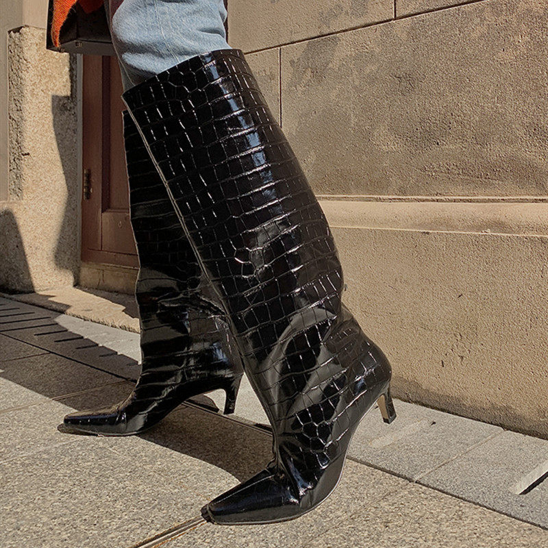 The new straight tube is a thin knight boot in Europe and the US crocodile stripe 2022 - can't keep up with the lap - leather boots