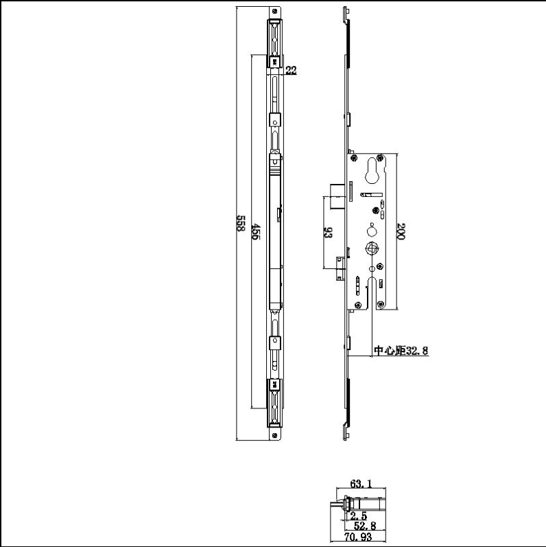 HOPO Shenzhen Haobo aluminum alloy door lock safety door transmission lock 9235 flat door multi-point linkage lock body