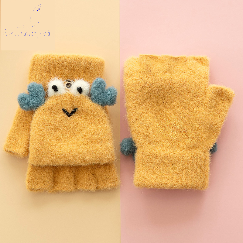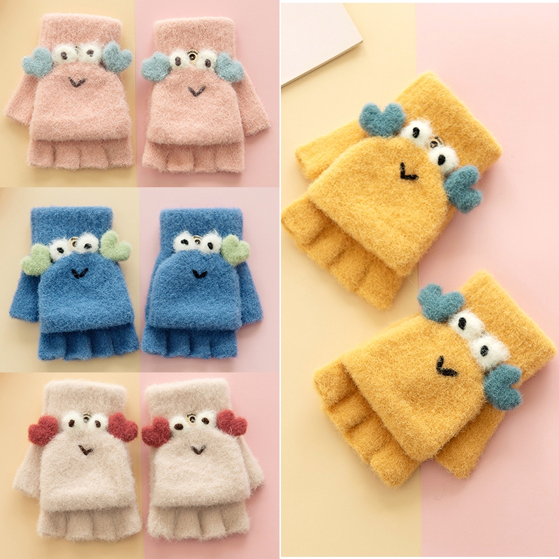 Children's gloves winter baby half finger flip cover girl warm kindergarten children Girl Boy writing cute