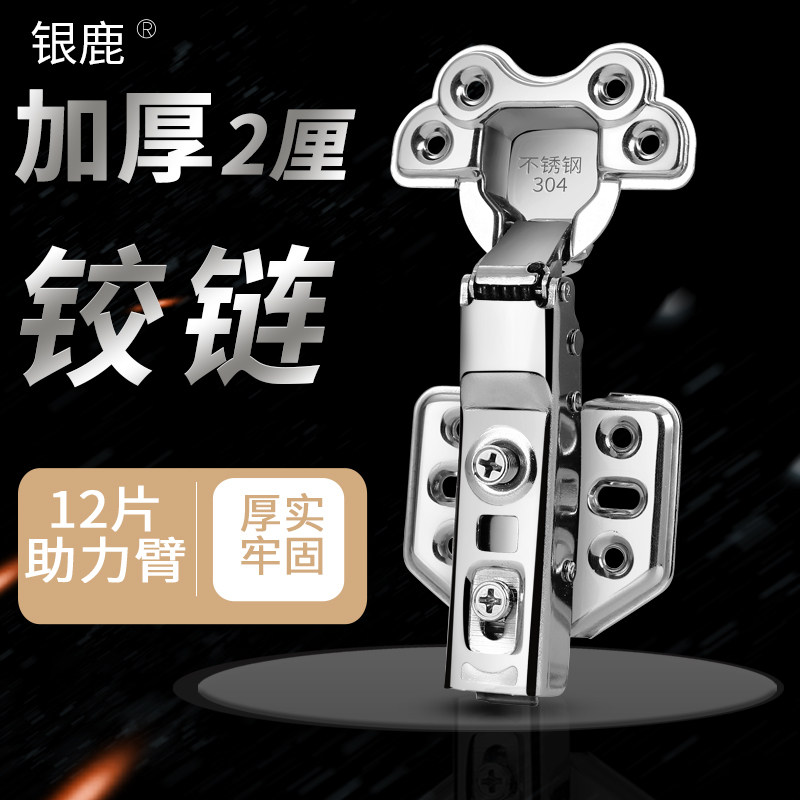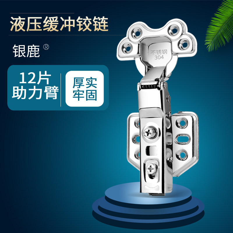 304 Stainless Steel Hinge Hydraulic Damping Silent Buffer Overall Cabinet Wardrobe Door Big Bend Mid-Bend Plane Tobacco Bucket Hinge