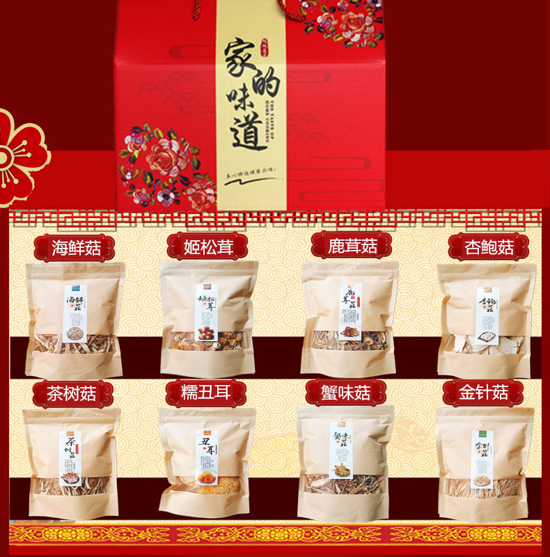 Mushroom Dry Cargo Gift Boxes Mount Mountain Treasures 8 Treasuria Tai Lilly Package Lunar New Year Spring Festival Autumn Delivery Courtesy of Mushroom Mix Saucepan Soup