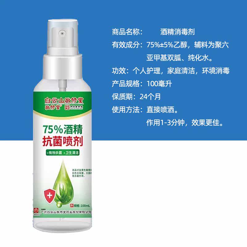Bai Yunshan Venerable Hall 75% Medical Alcohol Germicidal And Bacteriostatic Ethyl Alcohol Small Bottled Spray Home 100ML