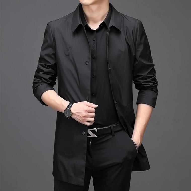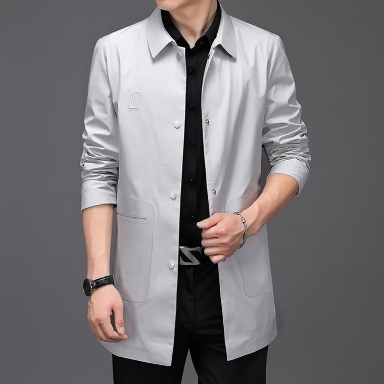 Fashion brand windbreaker men's long version of the Korean version of the trend handsome high-end light luxury lapel youth business casual spring and autumn jacket