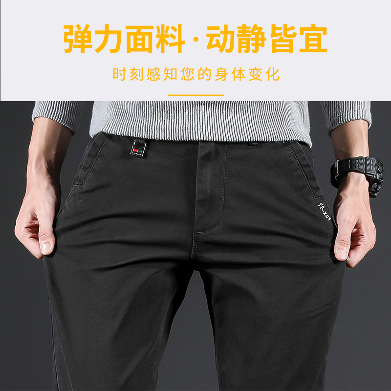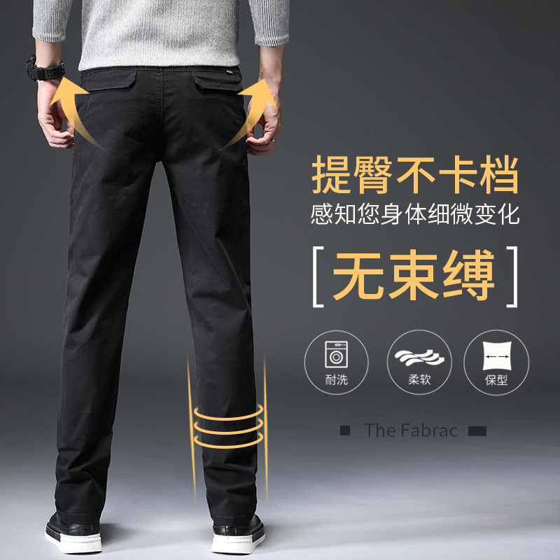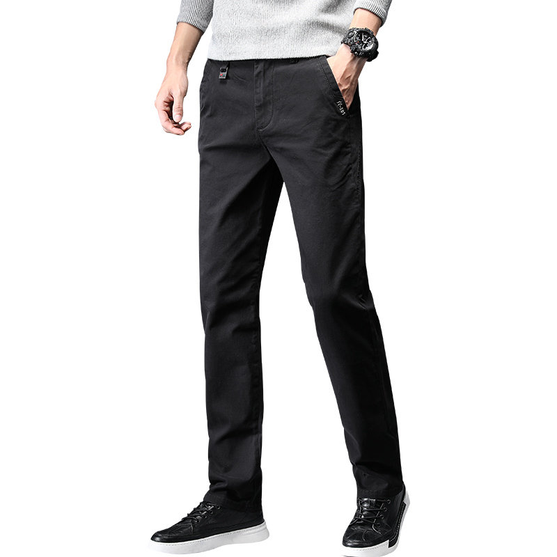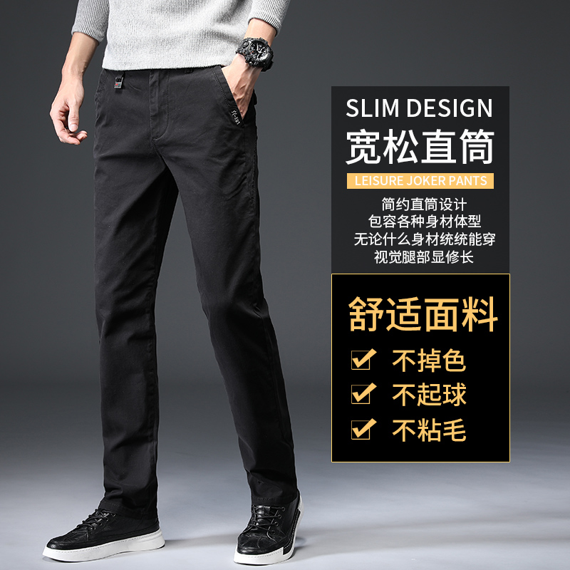 Summer slim pure cotton casual long pants men straight cylinder loose high end 100 lap summer men's pants Western pants black pants