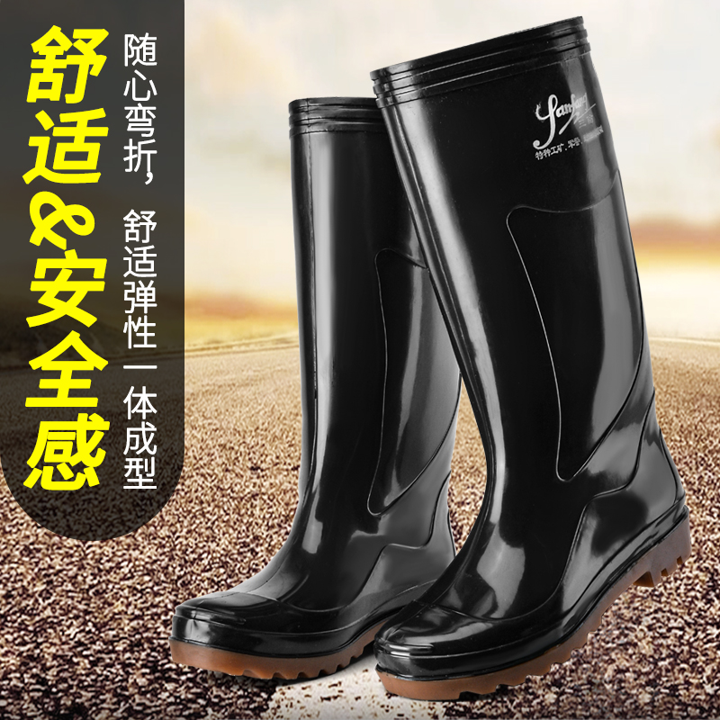 Rain Shoes Men Waterproof Shoes High Cylinder Thickening Work Long Cylinder Rain Boots Non-slip Wear Resistant Kitchen Rubber Sleeves Shoes Water Boots Buckets Shoes