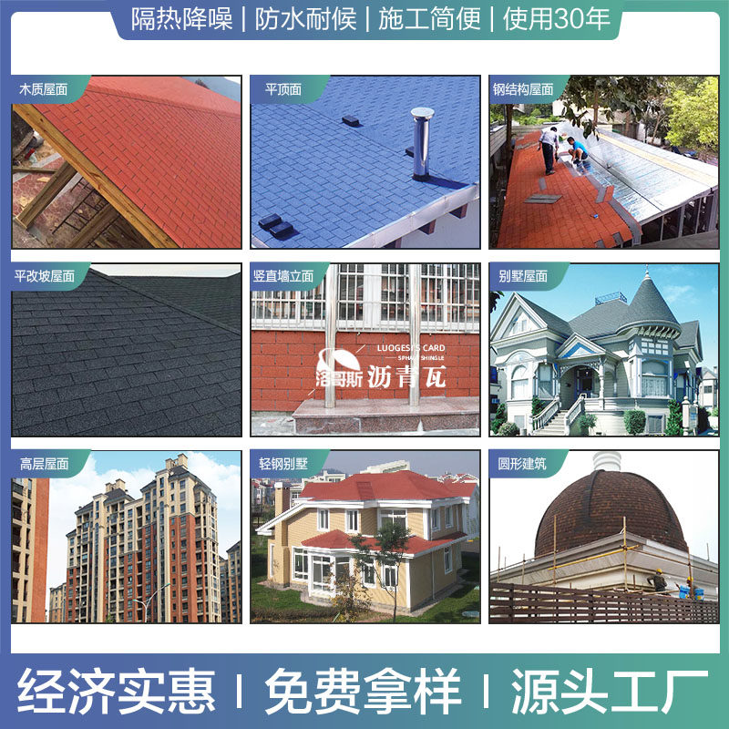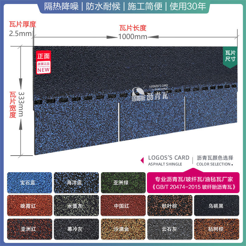 Single layer asphalt tile insulation linoleum color tile Light steel villa wooden house concrete roof Roof waterproof glass fiber tile