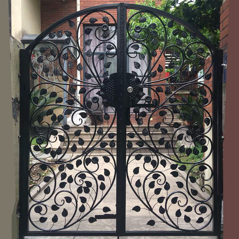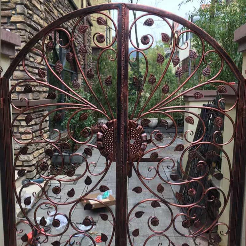 Custom wrought iron courtyard door hollow carved European-style outdoor villa door double door garden entry fence door