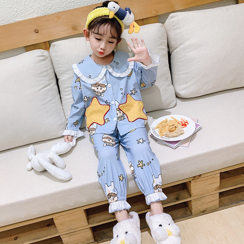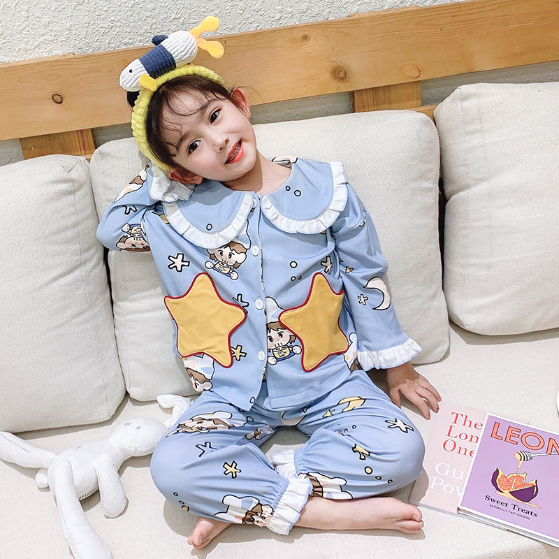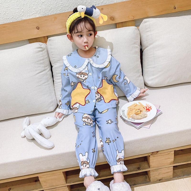 Children's pyjamas spring autumn pure cotton long sleeve parent-child sleepwear pants set of family 4-mouth baby CUHK boy's home dress thin