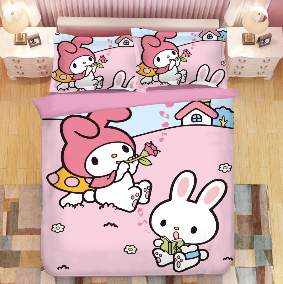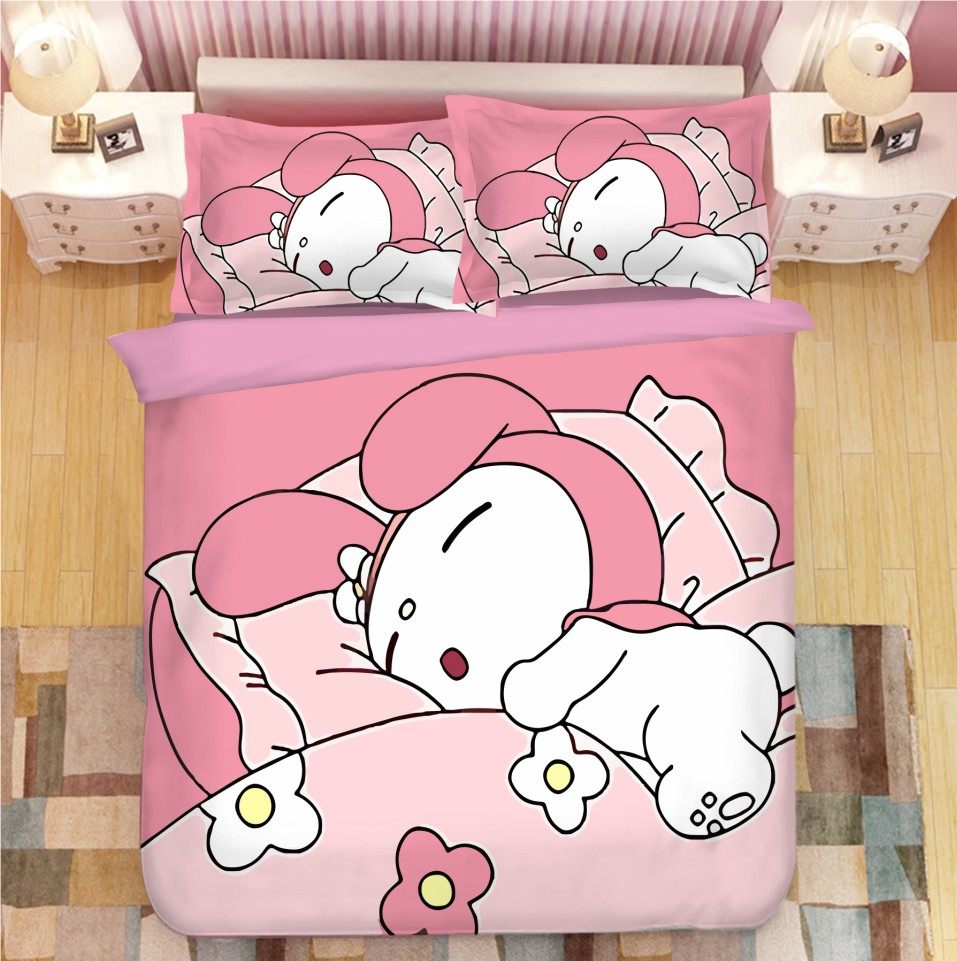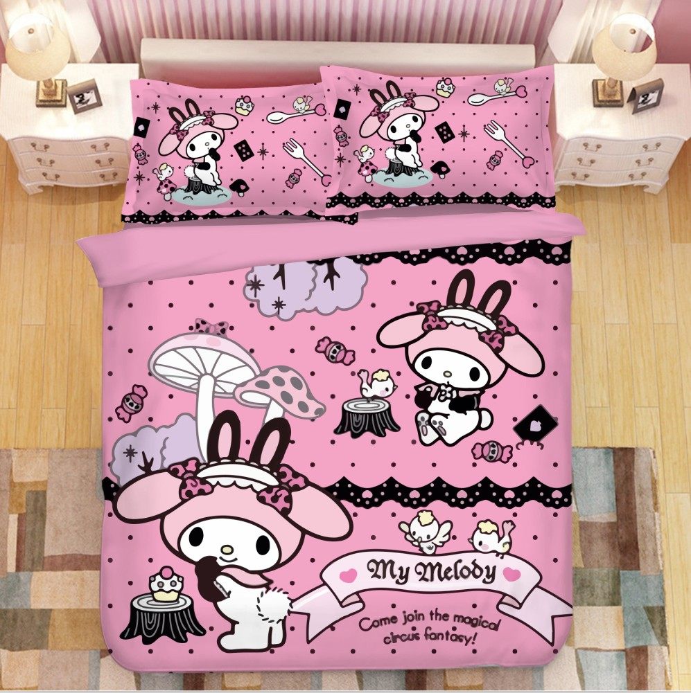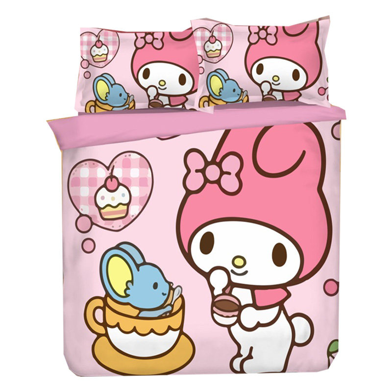 Cartoon cute MyMelody princess room girls pink Melody bed 3 four-piece dormitory fitted sheet
