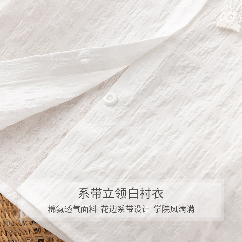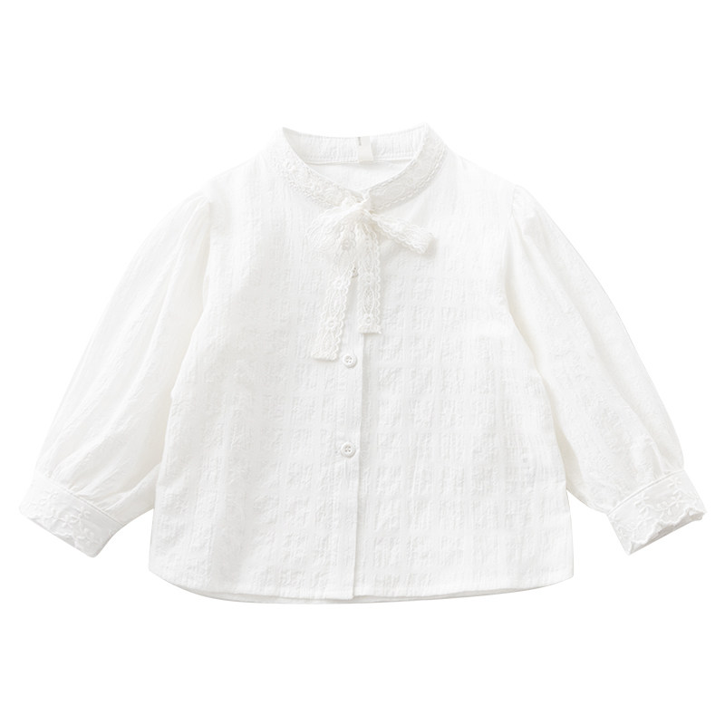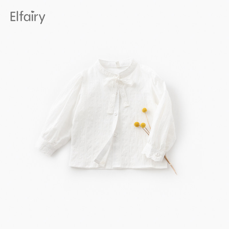 Elfairy children's shirt white lace-up shirt children's spring and autumn top solid color stand-up collar baby autumn clothes