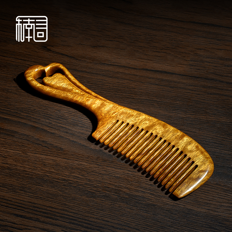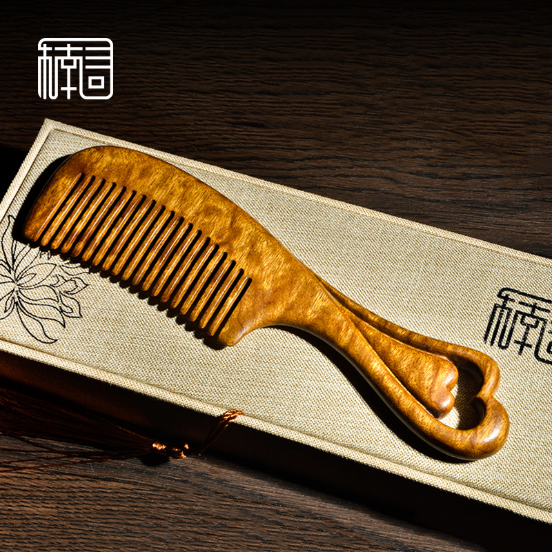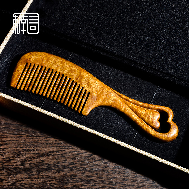 Nan search for gold silk Nan wood heart printing wood comb carving marriage gift girl home without static natural wood comb