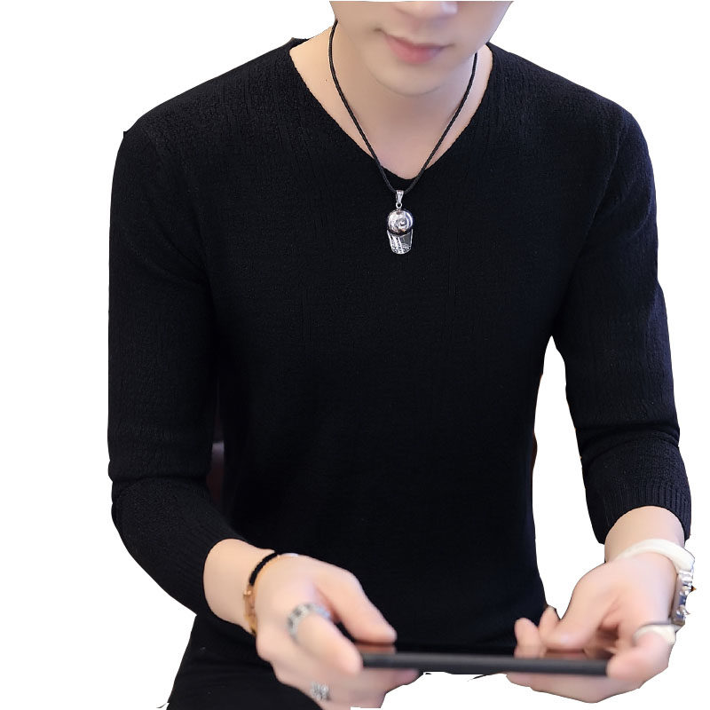 Long-sleeved T-shirt men's V-neck spring and autumn new Korean version of the trendy fashion brand handsome slim sweater casual knitted bottoming shirt