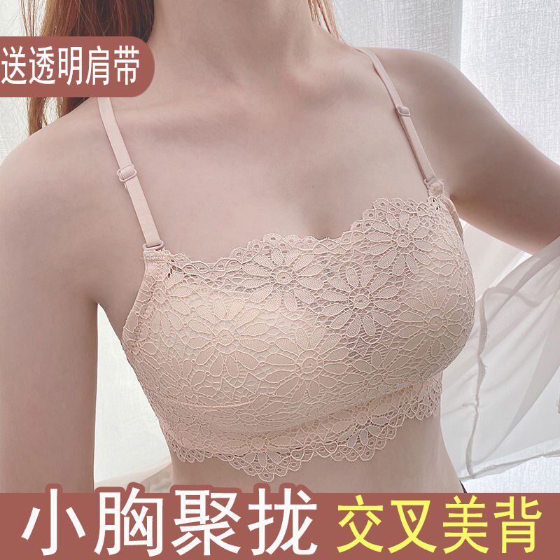 Thickened underwear women's ultra-thick 10cm beautiful back tube top anti-glare ultra-gathering small chest no steel ring 8cm wrap bra 9