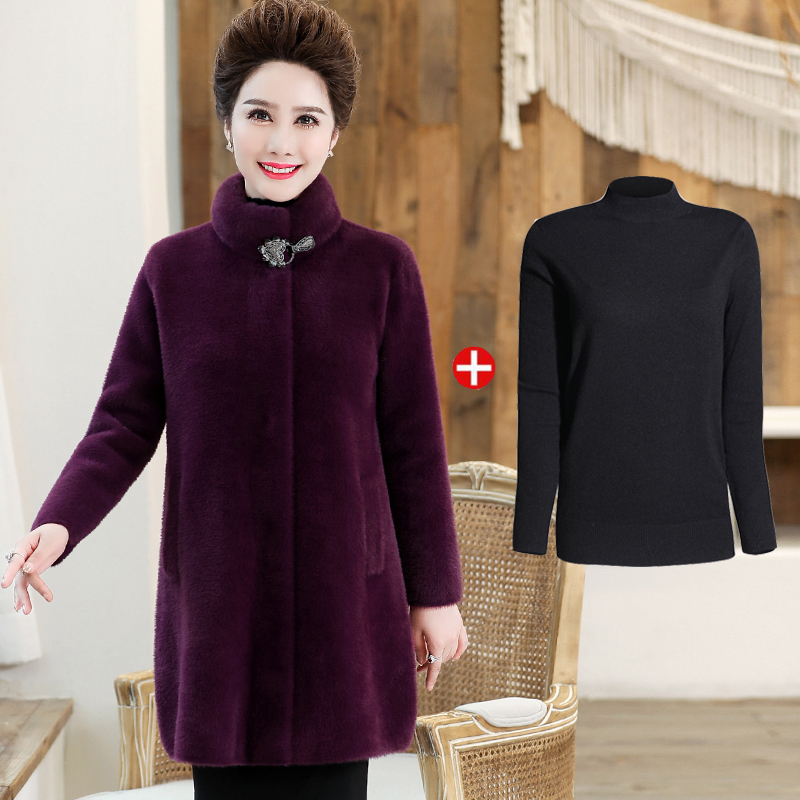Mid-aged women's clothing autumn and winter thickened water mink suede jacket plus fattening up overweight mum bifacial cashmere plush fur coat