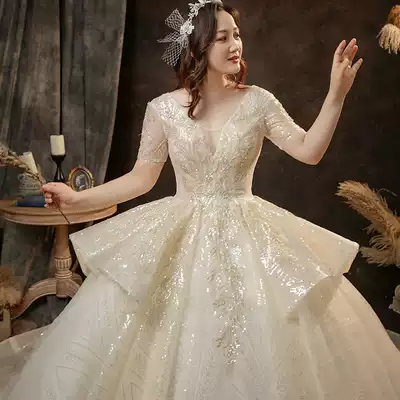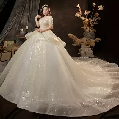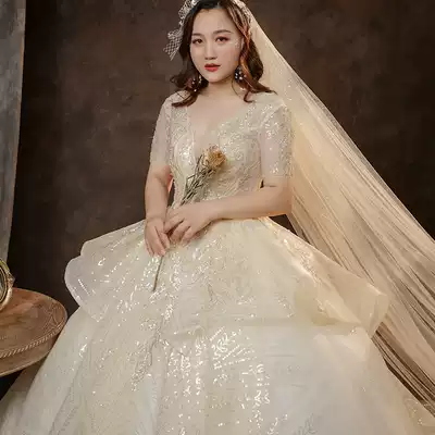 Large size wedding dress 2021 new bride fat sister mm 200 kg plus fat increase tail luxury thin temperament