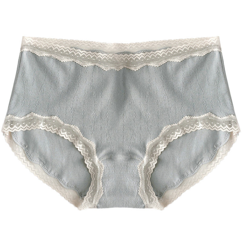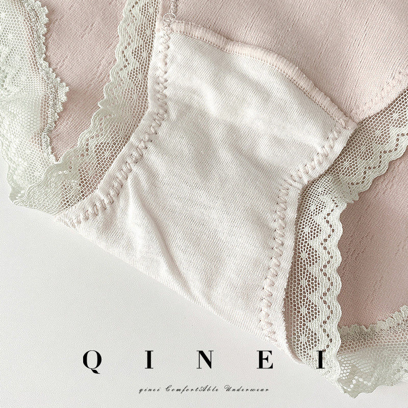 QINEI seven underwear women's pure cotton antibacterial inner crotch mesh breathable soft cotton Lace edge mid-waist briefs