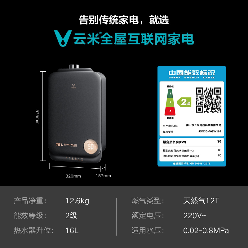 Yunmi Zero Cold Water Gas Heater 16 liters of smart large water gas strength drainage small transient S1