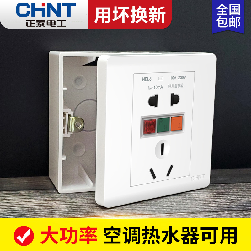 Chint 10A charging pile leakage protection switch surface mounted 86 type household 5 five-hole socket panel with leakage protection open - Taobao