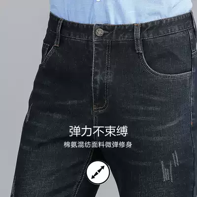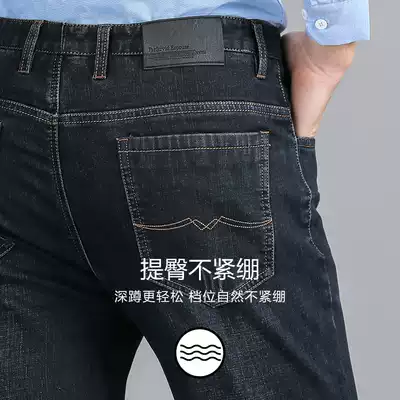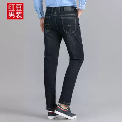 Red bean men's men's brushed jeans 2020 autumn new mid-waist straight slim casual long pants