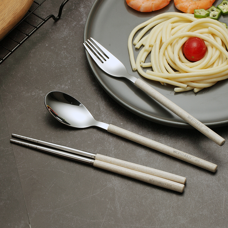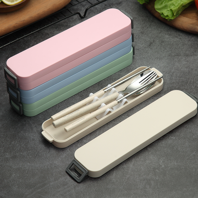 304 stainless steel tableware chopsticks spoon fork set 3 4 pieces of cute student folding tableware box