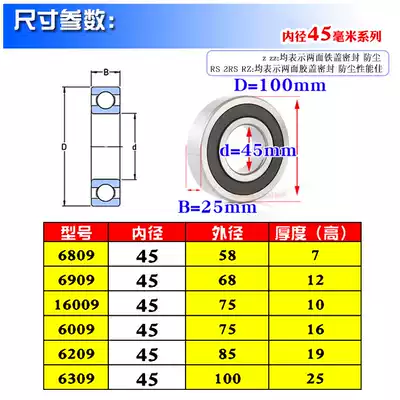 Deep groove ball bearings 6809 6909 16009 6009 6209 6309 ZZ 2RS RZ Inner diameter 45mm