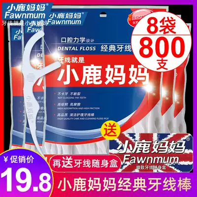 Fawn mother disposable ultra-fine floss stick Portable portable floss tag Family-packed dining room floss 8 bags 800 pcs