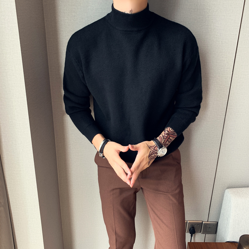 2022 - The new semi - tall long - sleeved sweater men and casual relaxed sweater Han - edition trend men knitted shirt