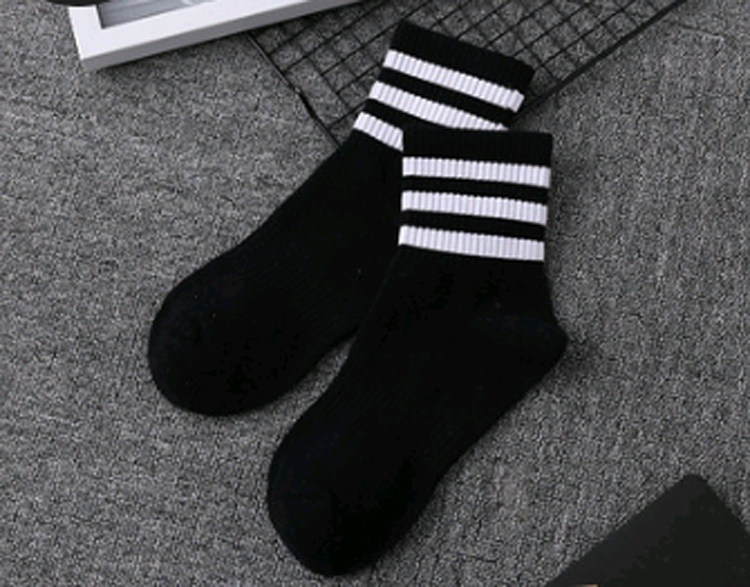 Three-strip maple student ins versatile trend hip hop personality socks versatile mid-tube socks stripe sport cotton socks