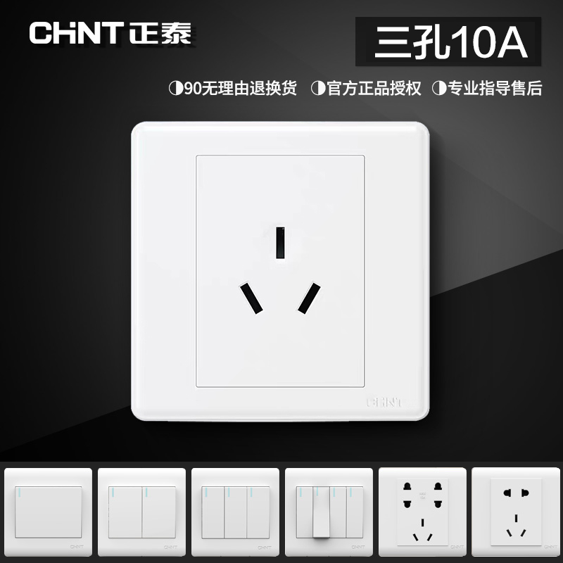 Zhengtai 3 Holes Three Holes 10A Socket Home Switch 86 86 Type 10 An Wall Dark Mounted Three-Pole Three-Inserted Panel Porous Insert