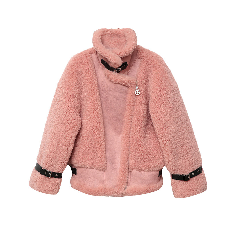 2021 new grain suede lamb velvet fur integrated short and small subwinter clothing locomotive lamb wool jacket female short