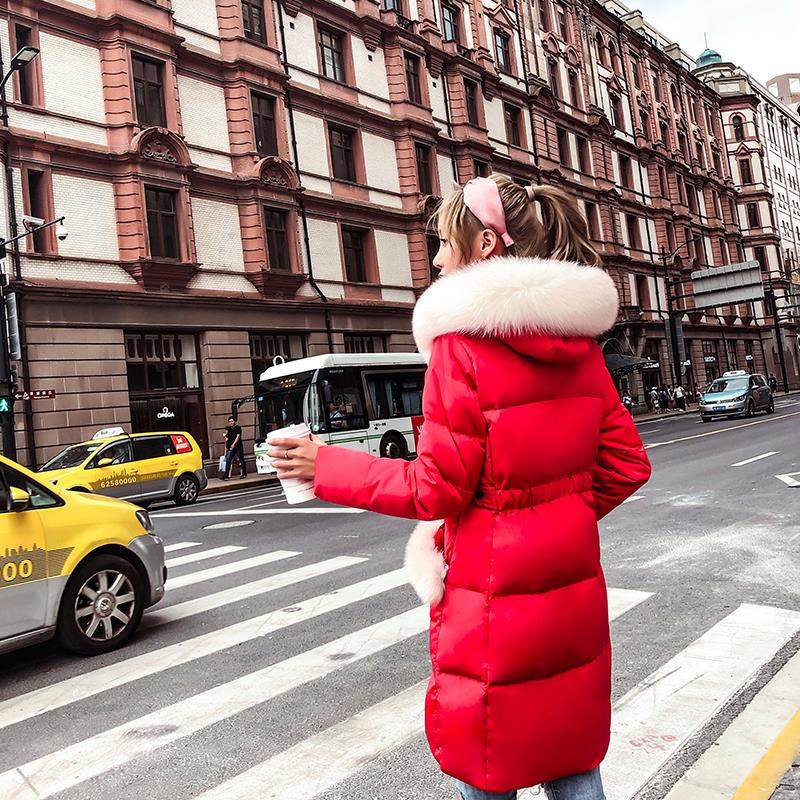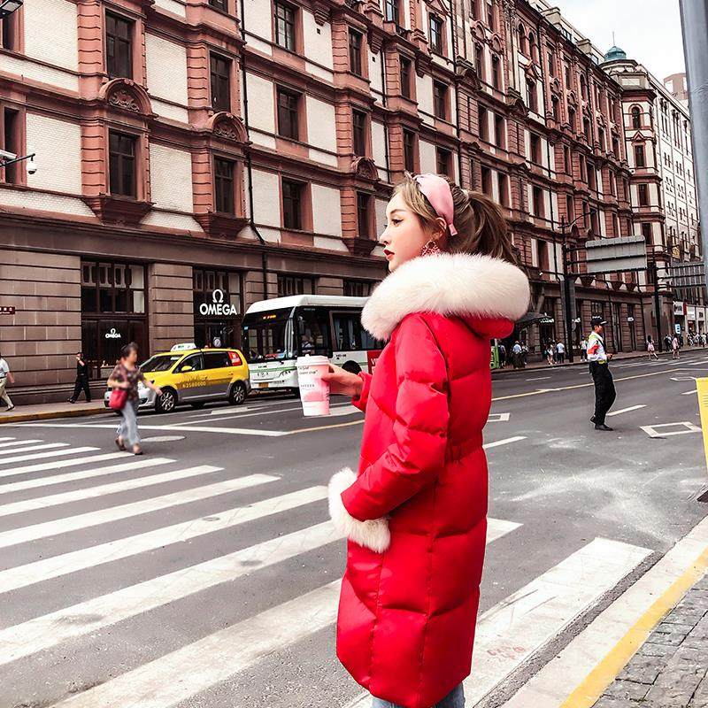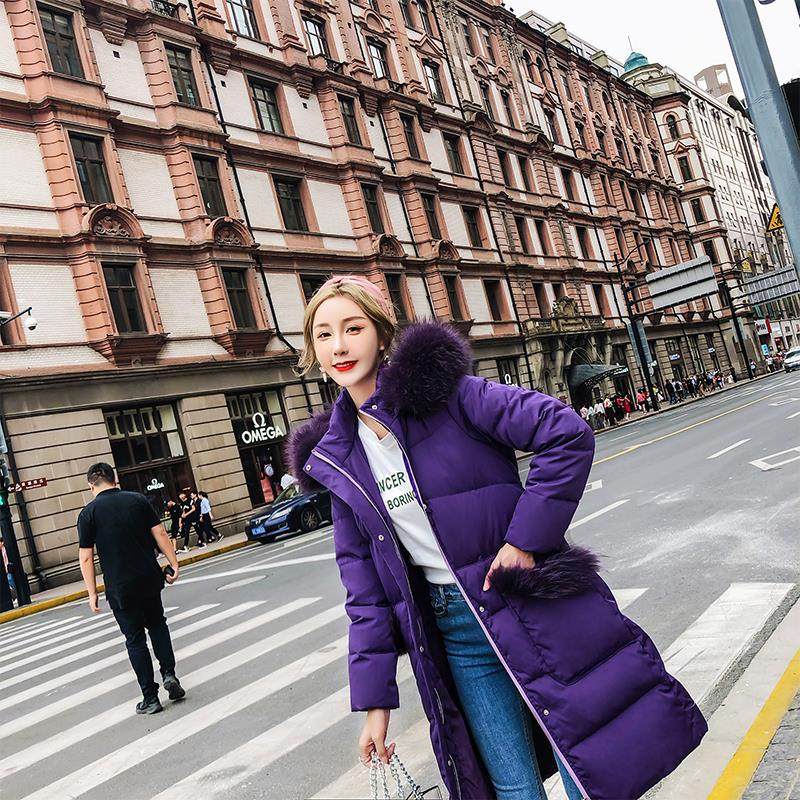 European Station Euros Genuine Fur Collar White Duck Suede suede Feminists Slim Fit in a slim winter clothing jacket Long version