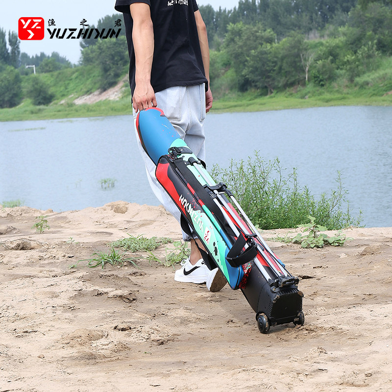 Hard shell fishing rod bag fishing gear bag with wheel double-layer hand rod bag waterproof wear-resistant fishing rod bag fishing umbrella storage fish bag