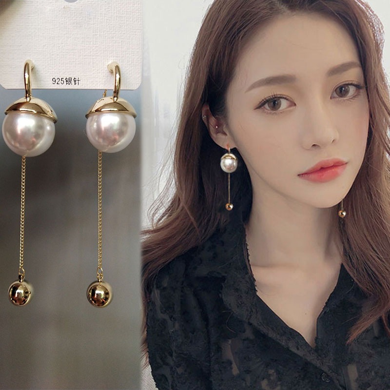 925 silver needle star with pearl tassel earrings back hanging atmospheric long version earrings earrings high-end earrings