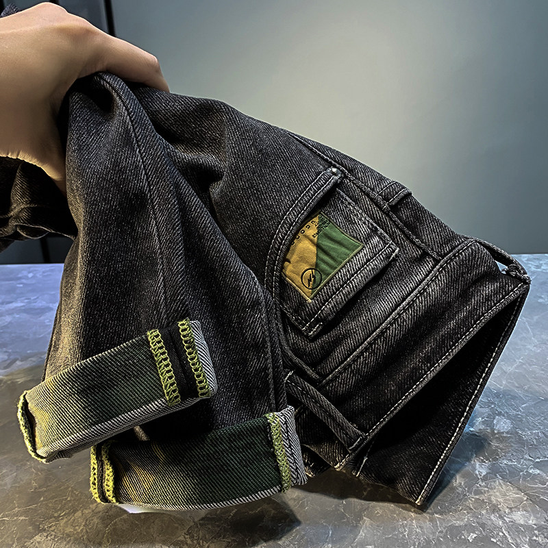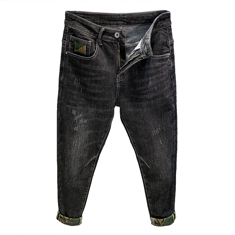 2022 autumn tide brand men's printed jeans Korean version trend micro harem small feet straight pants men's trousers