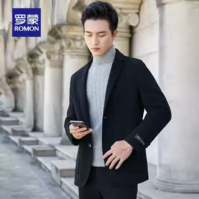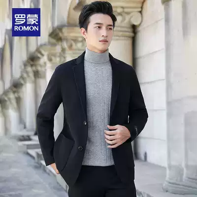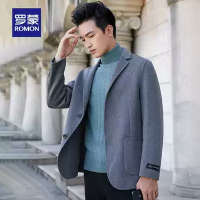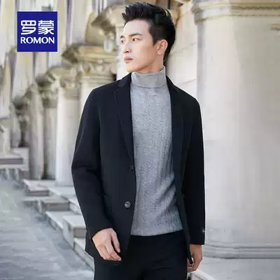 Romon men's woolen coat 2021 autumn and winter New lapel pure wool double-sided woolen coat fashion casual coat