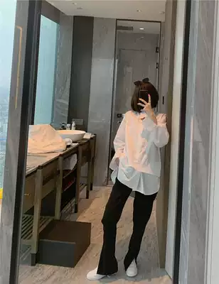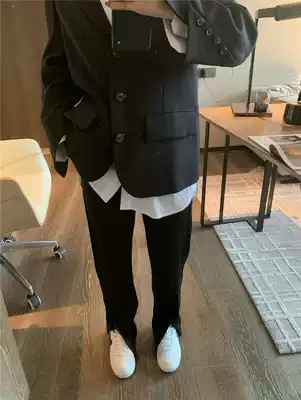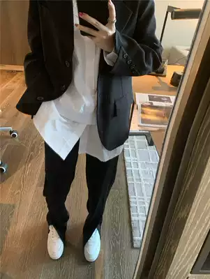 Black split suit pants women Autumn 2020 new Korean version of loose Joker straight small black pants