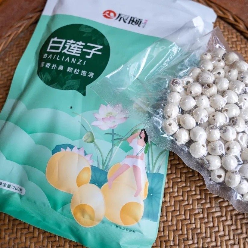 Chen Summer's new products Hubei Honghu Tongxin white lotus seed 200 gr x 2 bags dry goods to core special produce fresh