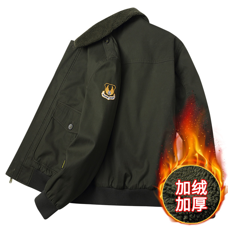 Tooling jacket autumn and winter European and American military uniform pure cotton canvas thick and velvety American pilot men's thickened jacket man
