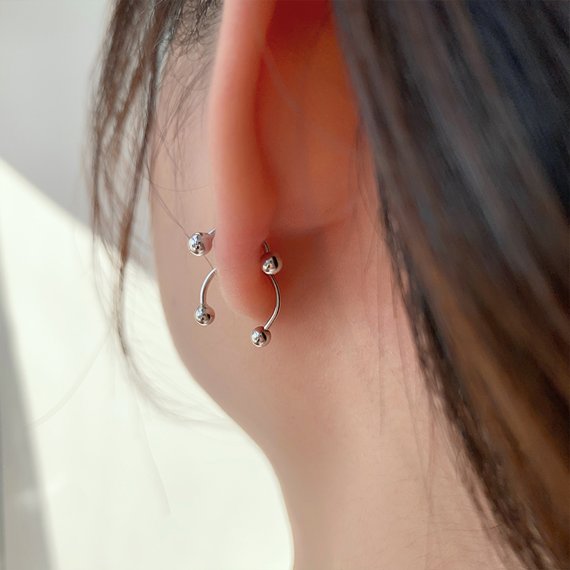 For late screw bead silver earrings simple small and delicate personality anti allergy sleep without picking earrings
