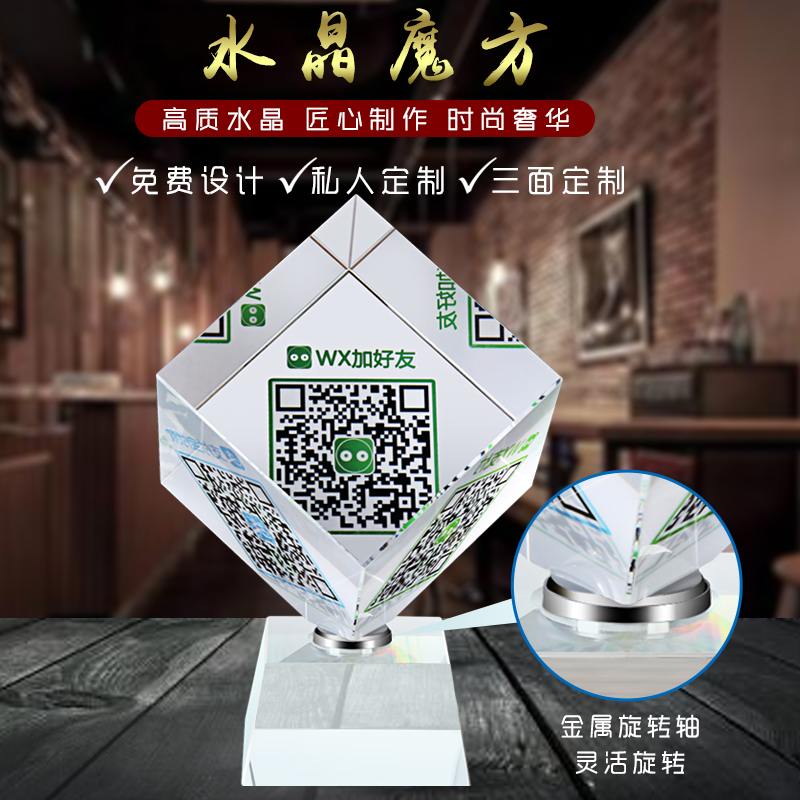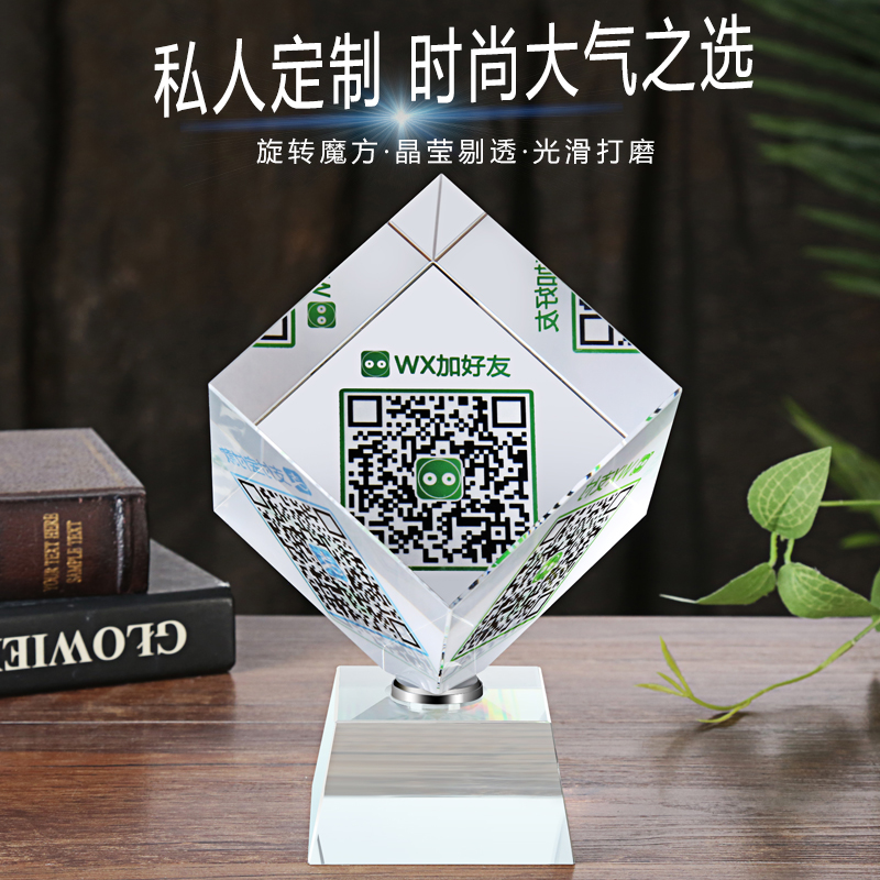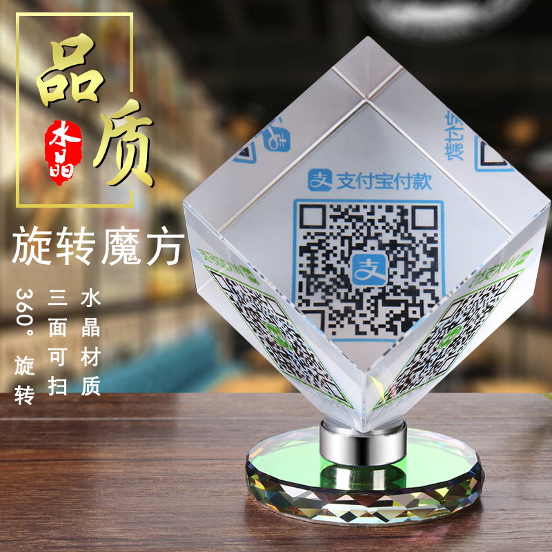 Receipt code QR code card custom stickers Scan code card high-grade crystal rotating QR code collection and payment brand personality creative Rubik's cube WeChat merchant collection code QR code stand-up table customization