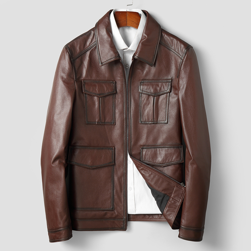 Large size Henning genuine leather down fur coat men's pure cow leather gats up and upturned jacket Fat Thickened Jacket