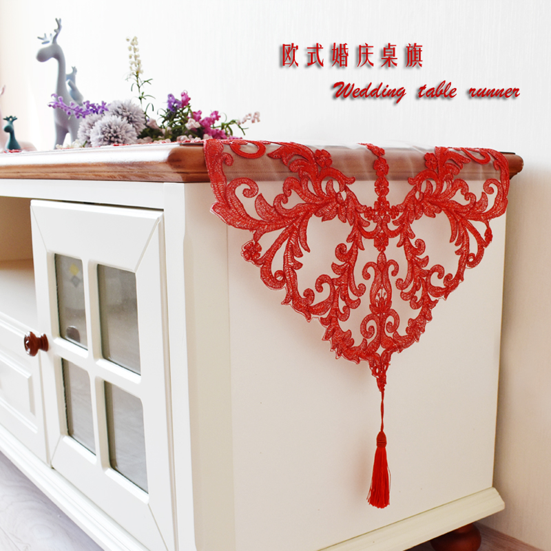 Wedding table flag TV cabinet cover cloth big red festive chest of drawers bedside table cover towel European embroidery table flag