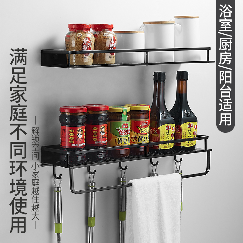 Punch-free black kitchen seasoning rack kitchen utensils supplies large wall-mounted window sill storage hook rack window