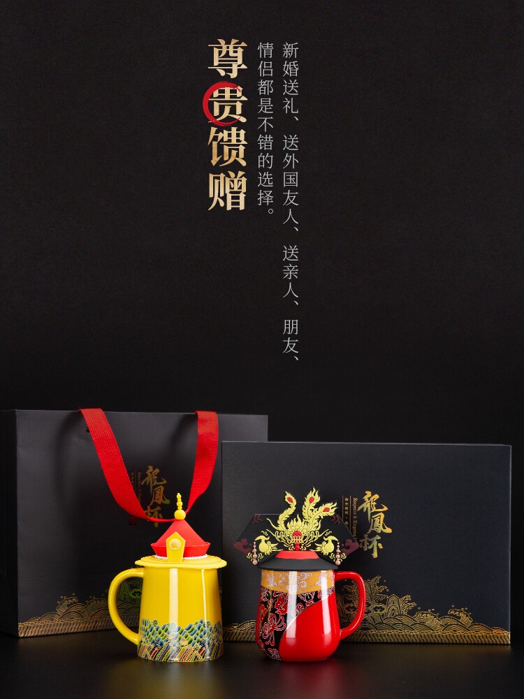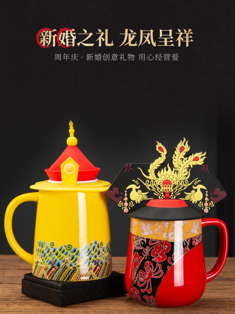 Upper New Forbidden City Dragon Crested Cup Lovers for Cup Wedding Cups Gifts Ceramics Water Glasses Mark Cup Creative Wedding Celebration