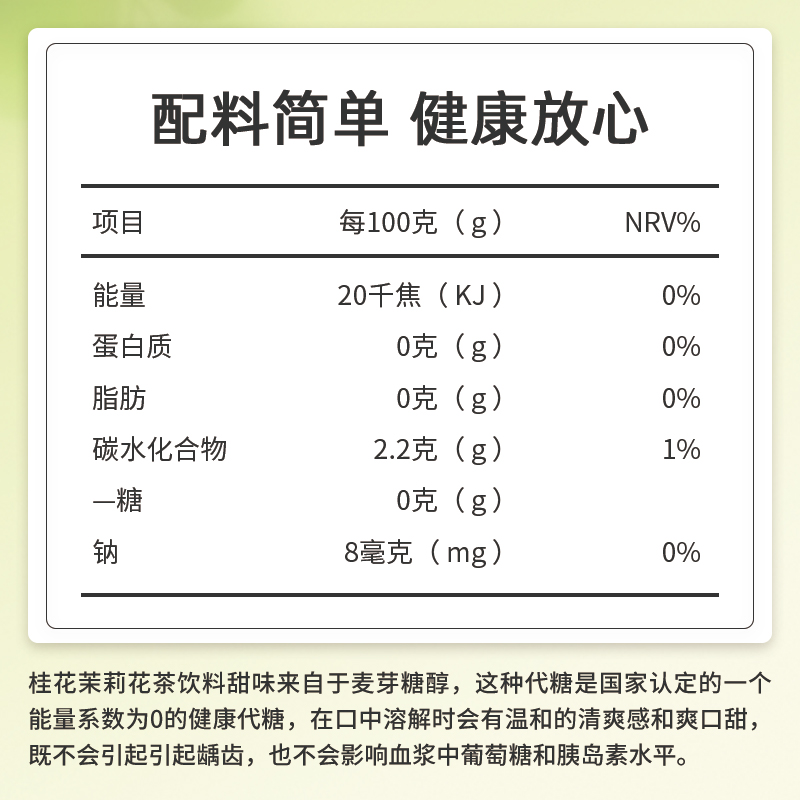 Water Maltitol Jasmine Tea Osmanthus (0 5 g l) Sodium bicarbonate Vitamin C