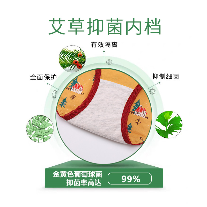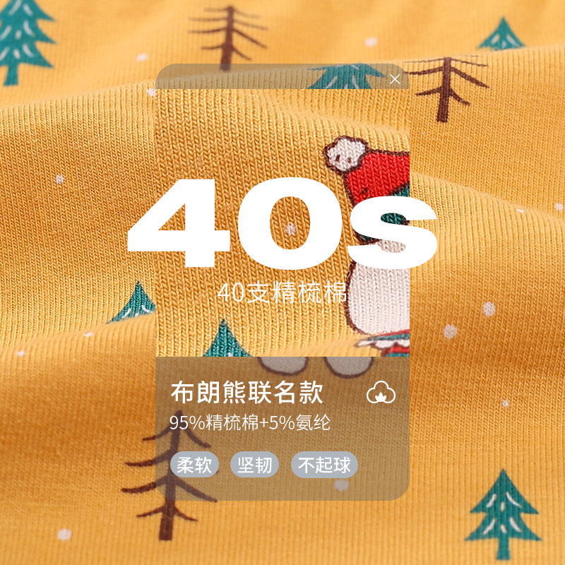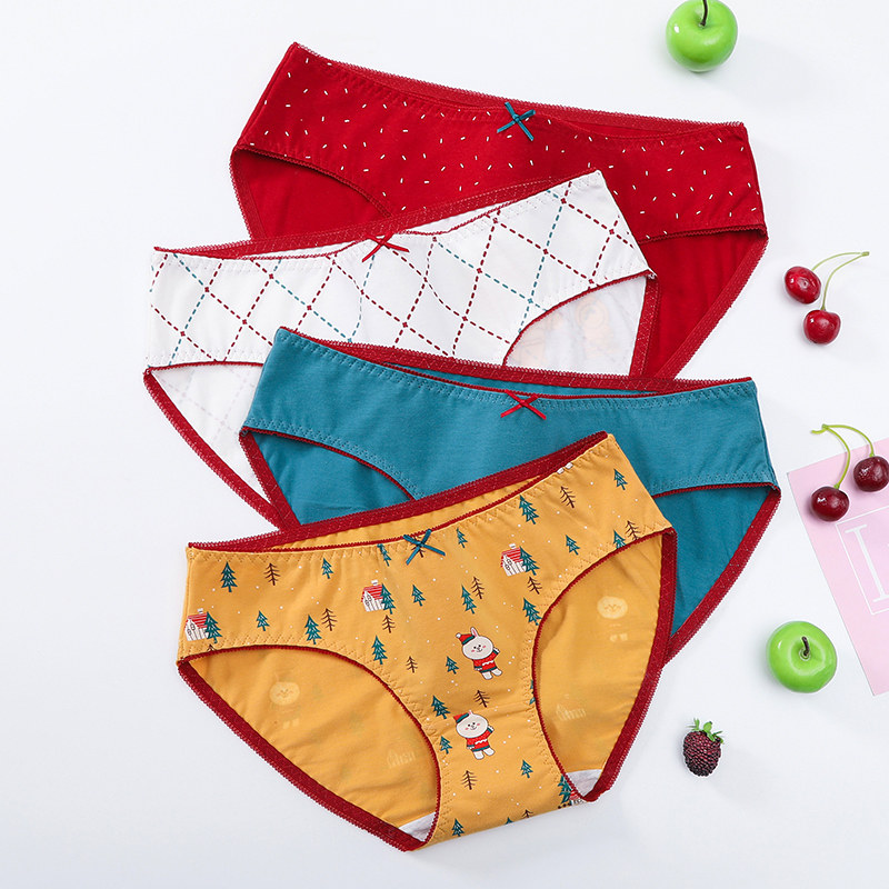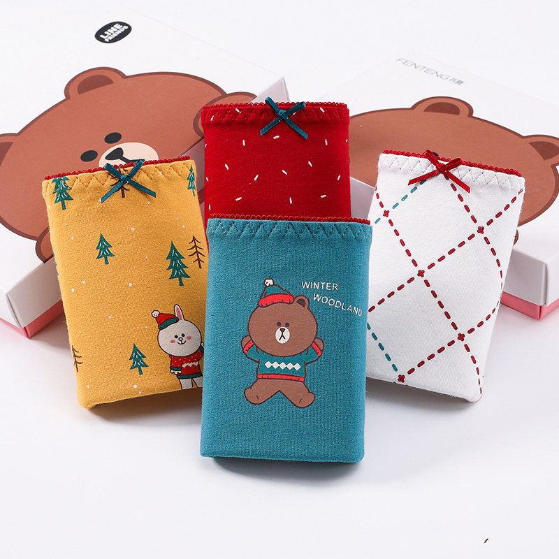Fenten Brown Bear Christmas Day Joint Underwear Women's Antibacterial Cotton crotch Mid-waist Girl Cute Cartoon Trim Pants