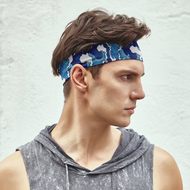 Sports sweat-absorbing headband men's headscarf forehead wear anti-perspirant running basketball sweatband elastic quick-drying wide hairband tide