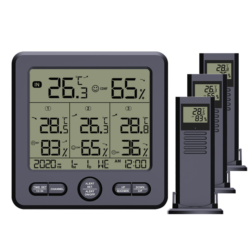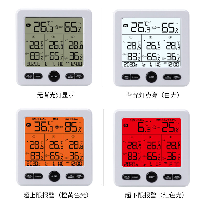 Explosion-one-drag triple multifunction wireless temperature hygrometer room inside and outside high-precision large screen backlight alarm thermometer
