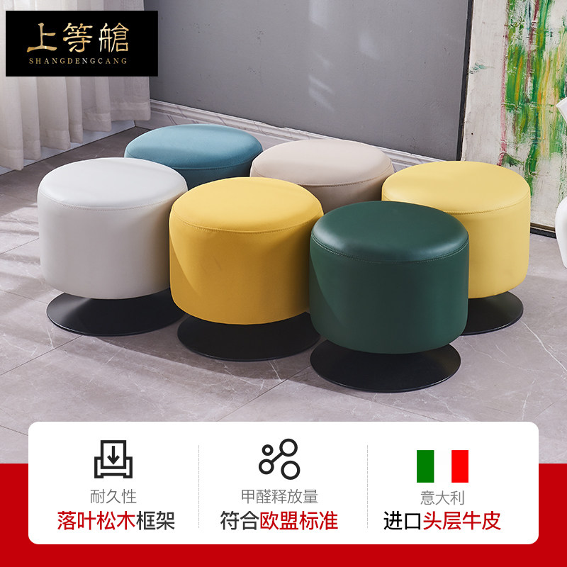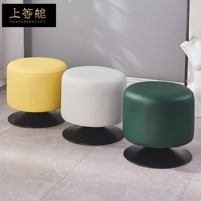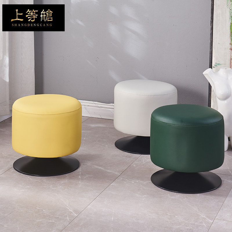 Leather rotatable small leather stool creative shoe-changing stool wearing shoe store pier home living room door low stool make-up round stool